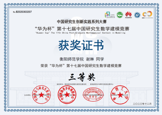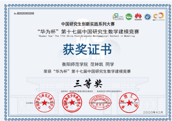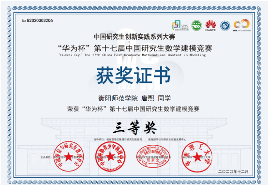 402永利集团研究生首次参加该赛事,由周立君老师指导的数学与统计学院研究生唐熙、谢琳、物理与电子工程学院研究生范钟凯组成的参赛队伍获得全国三等奖一项。