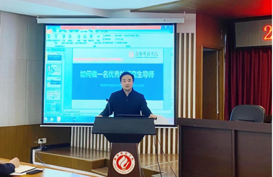 研究生院副院长李伯华教授以“如何做一名优秀的研究生导师”为主题,围绕“研究生导师的基本素质与职责”、“研究生导师与研究生的关系”、“如何做好一名研究生导师”、“研究生教育教学管理系统培养流程介绍”等四个方面深入解读相关政策要求,明确导师的岗位职责;通过案例讲述,强调正确认识师生关系和强化导师服务意识的重要性;结合自身担任研究生导师的工作经验,围绕“本科与研究生‘导’与“‘教’”的关系”等方面给大家做了具体指导。
