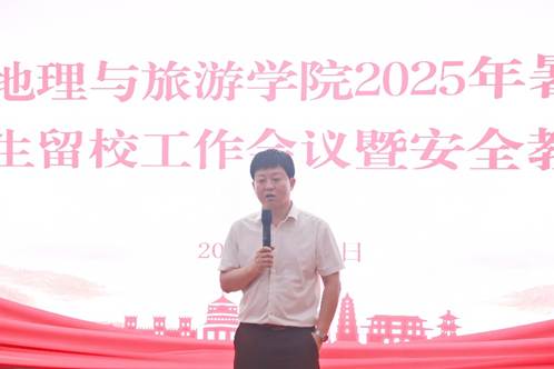 为确保暑假期间各项工作有序开展,切实做好留校研究生安全保障工作,地理与旅游学院于7月1日16:30在星瀚楼中108召开2025年暑期研究生留校工作会议暨安全教育大会。学院副院长张家其、学工办主任兼团委书记以及研究生辅导员阳宏润出席本次会议,全体留校研究生参加。